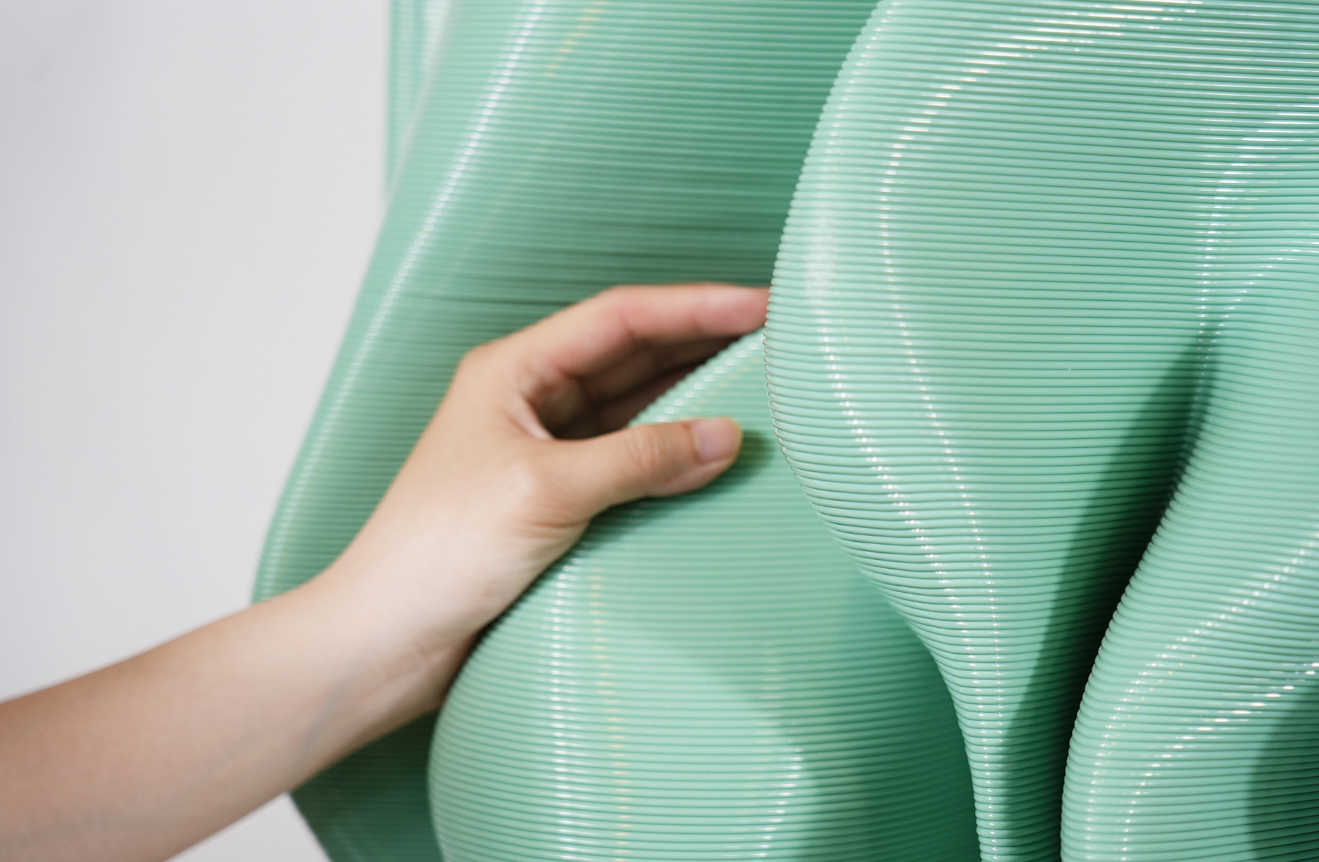 CoWave brings together 3D printing, neuroscience, AI and sustainable design to create deeply personal artworks. Instead of following trends, it starts from something more fundamental: emotion. During a brief visual session, a person’s brainwaves are measured using EEG technology. This data is then translated by an AI model into a unique 3D design.